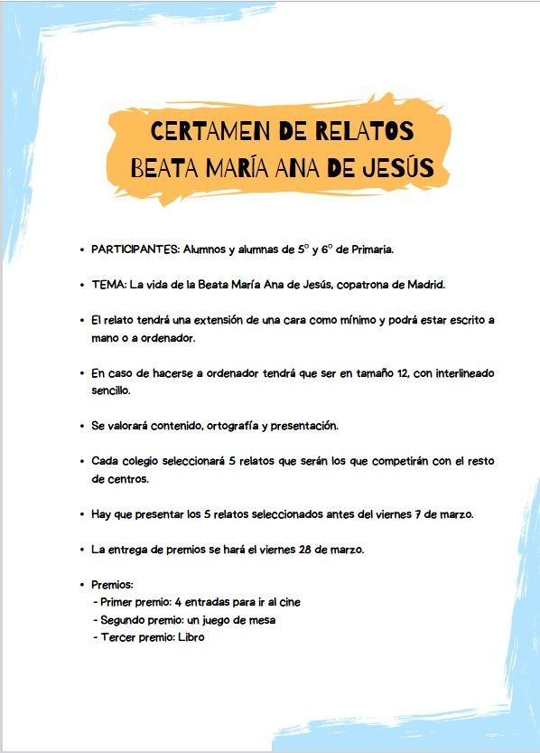 CERTAMEN DE RELATOS BEATA MARÍA ANA DE JESÚS
